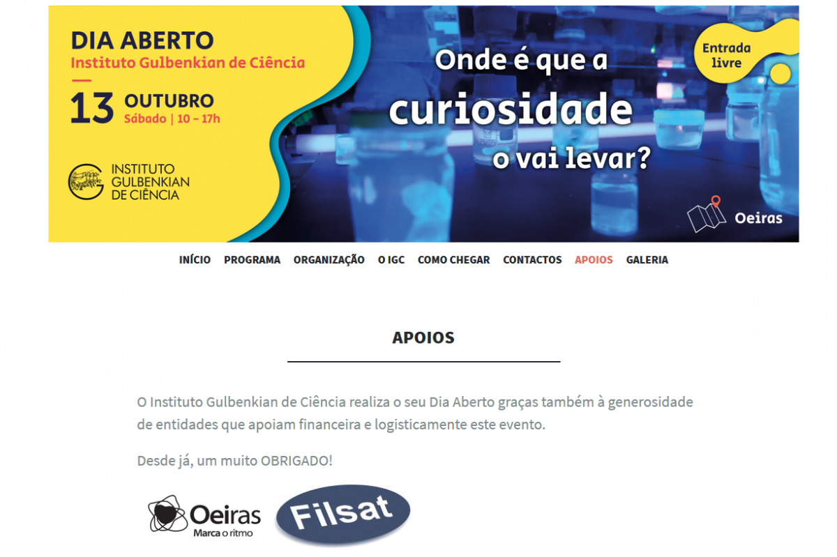 Filsat supported the 9th Edition of the Open Day Gulbenkian Institute of Science (IGC). An initiative that took place on October 13 in the Gardens of the Palace of the Marquis of Pombal, Oeiras. An event with activities for all ages, where visitors had the opportunity to participate in scientific experiments, games, workshops, among others.